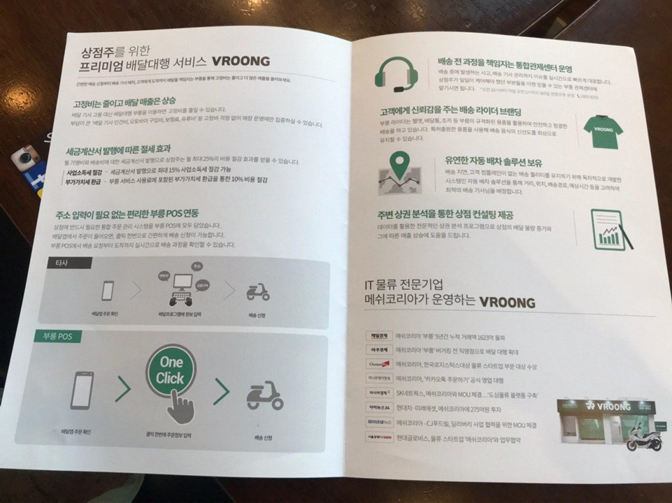 부릉이 어떤 서비스를 하는지 소개된 책자와 POS기기 사용설명서를 배부해주십니다.