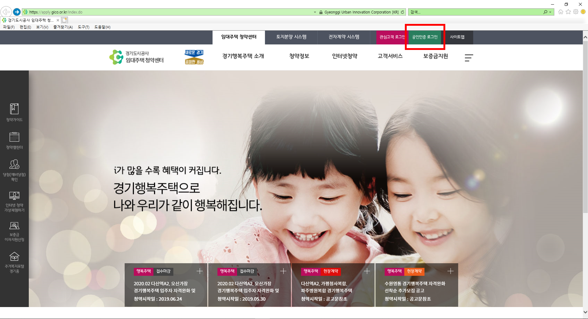 먼저, 경기도시공사 임대주택 청약센터 홈페이지(https://apply.gico.or.kr)에 들어갑니다.