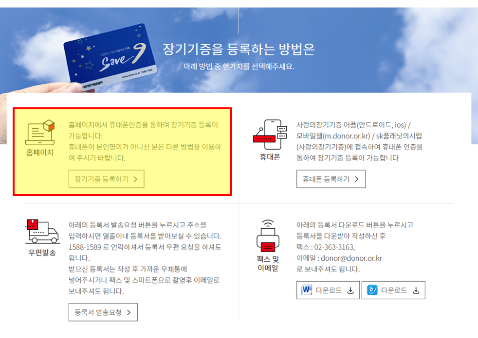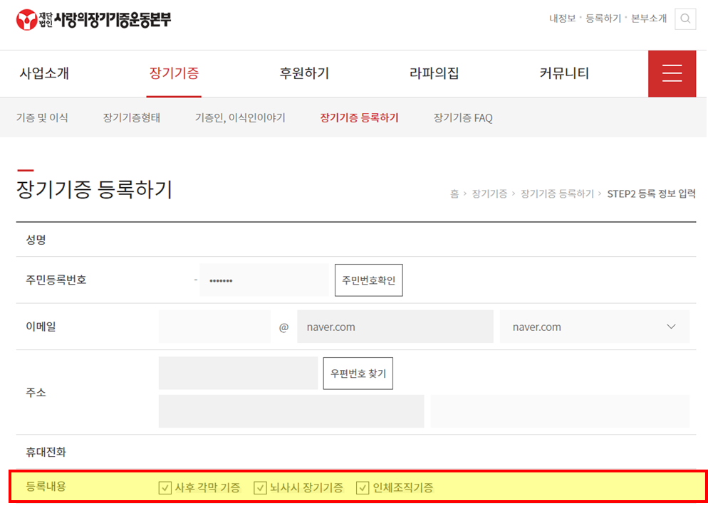 사후 각막기증, 뇌사시 장기기증, 인체조직기증 세 가지를 신청했는데요.