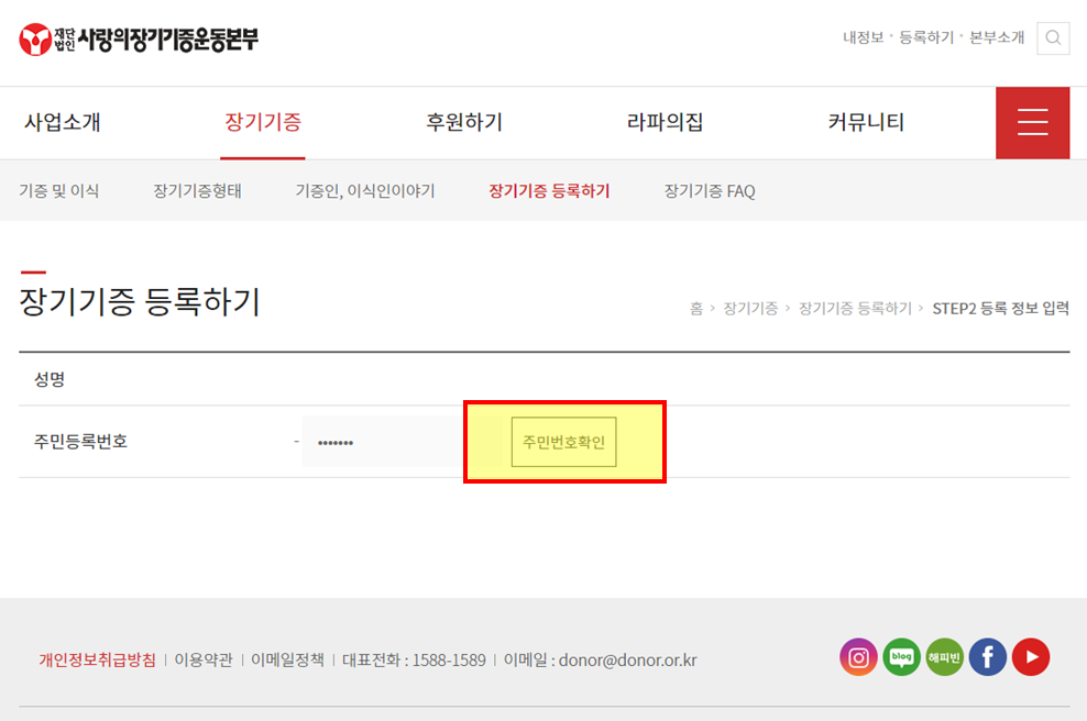 운전면허증 표기를 원하시면 표기를 선택하실 수 있습니다. 다 되셨으면 "장기기증 등록하기"