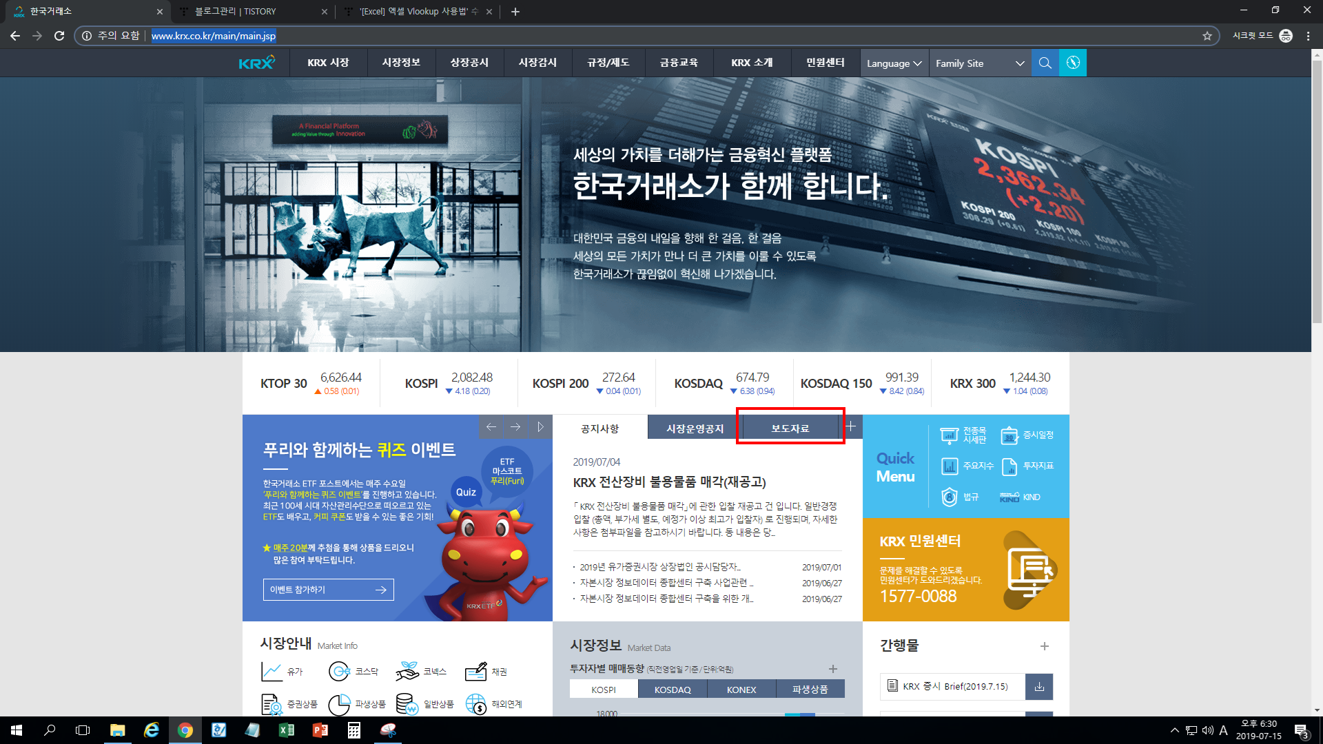 먼저, 한국거래소 홈페이지(http://www.krx.co.kr)에 접속합니다.
