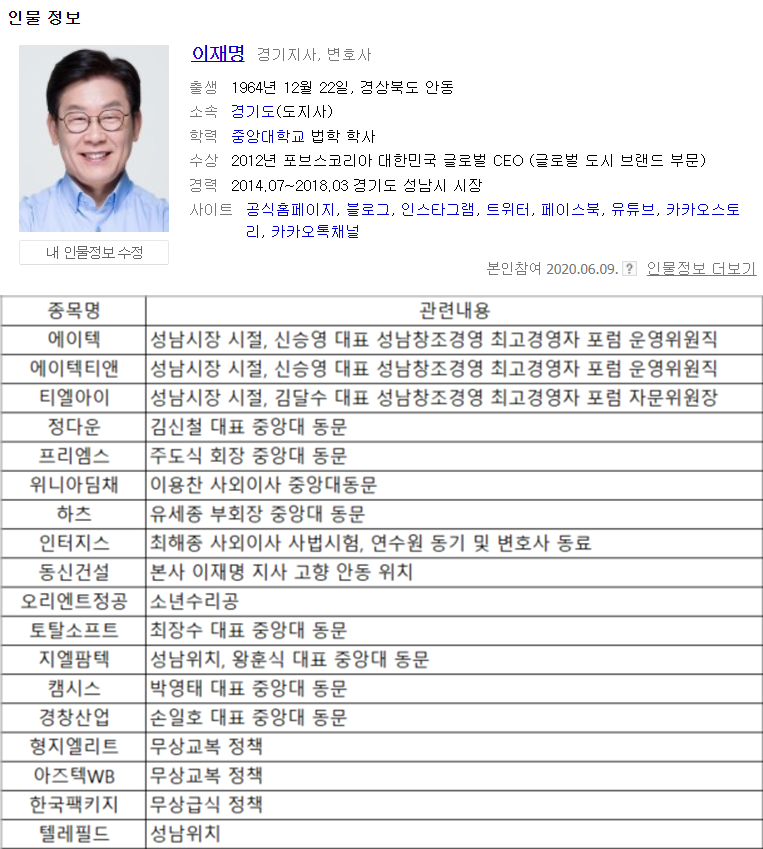1. 이재명 : 에이텍, 에이텍티앤, 티엘아이 등