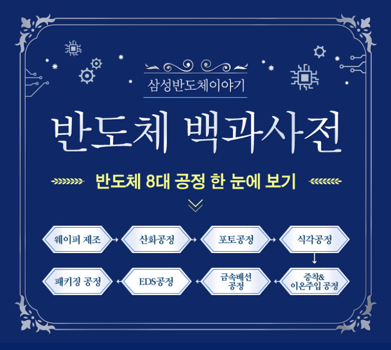 반도체를 만들기 위해서 여러 가지 공정을 거쳐야 하는데 삼성전자에서 고안한 '반도체 8대 공정'을 살펴보겠습니다.