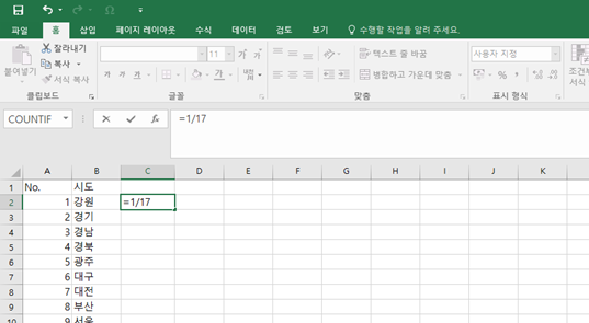 C2셀에 "1/17"을 입력하면 일반적으로 어떤 값이 출력될까요?