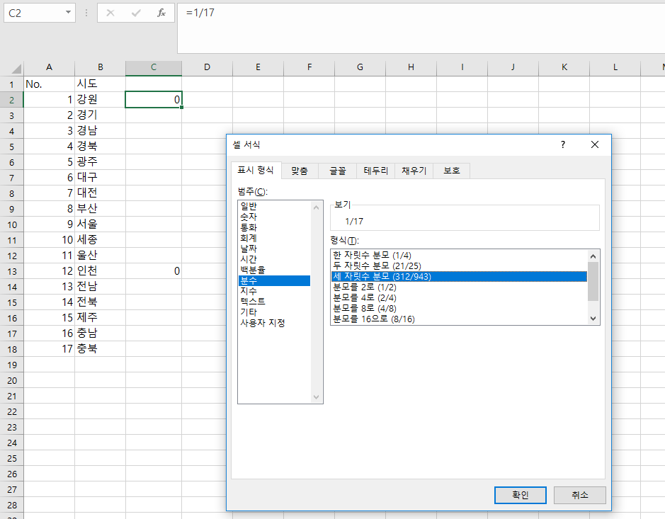 그럼 17분의 1을 표현하려면 어떻게 해야할까요?