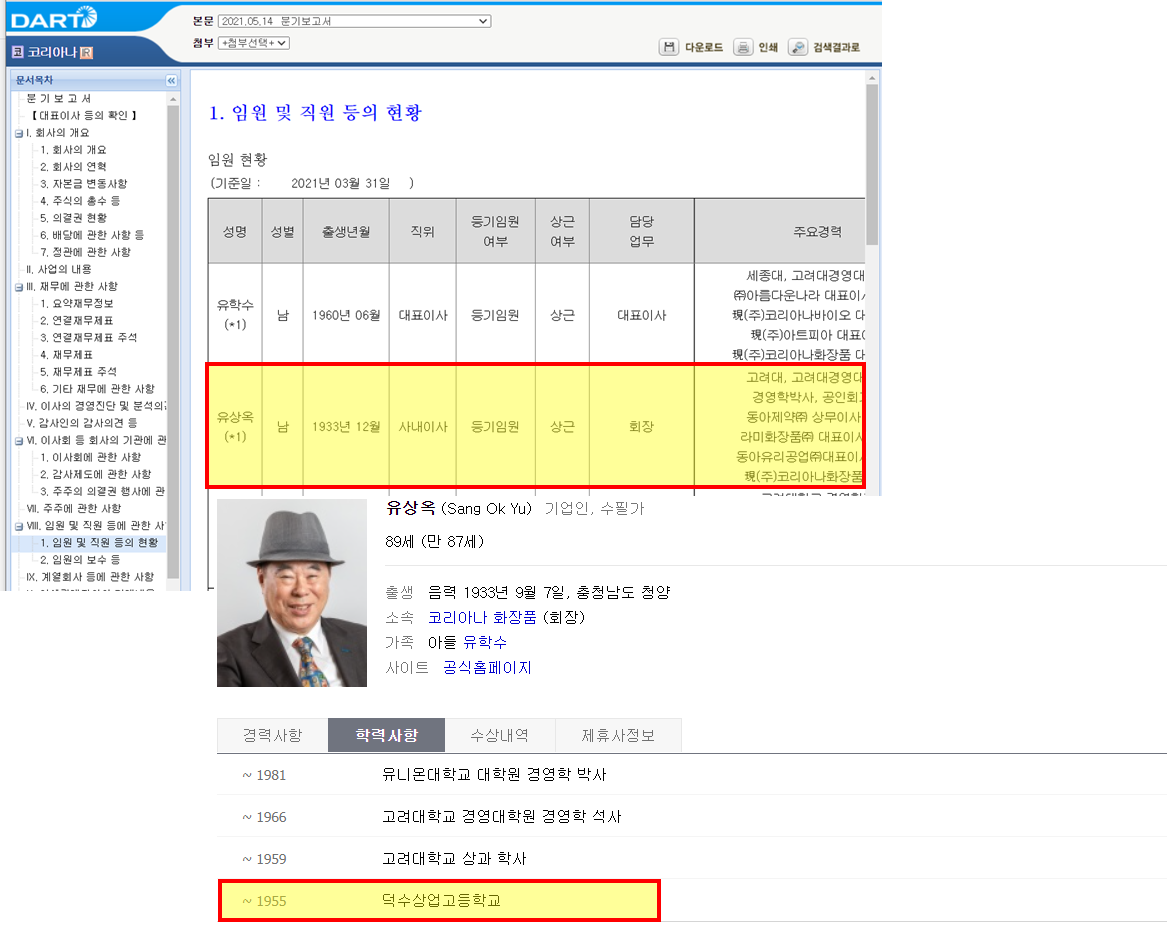 코리아나 : 유상옥 회장 덕수상고 동문