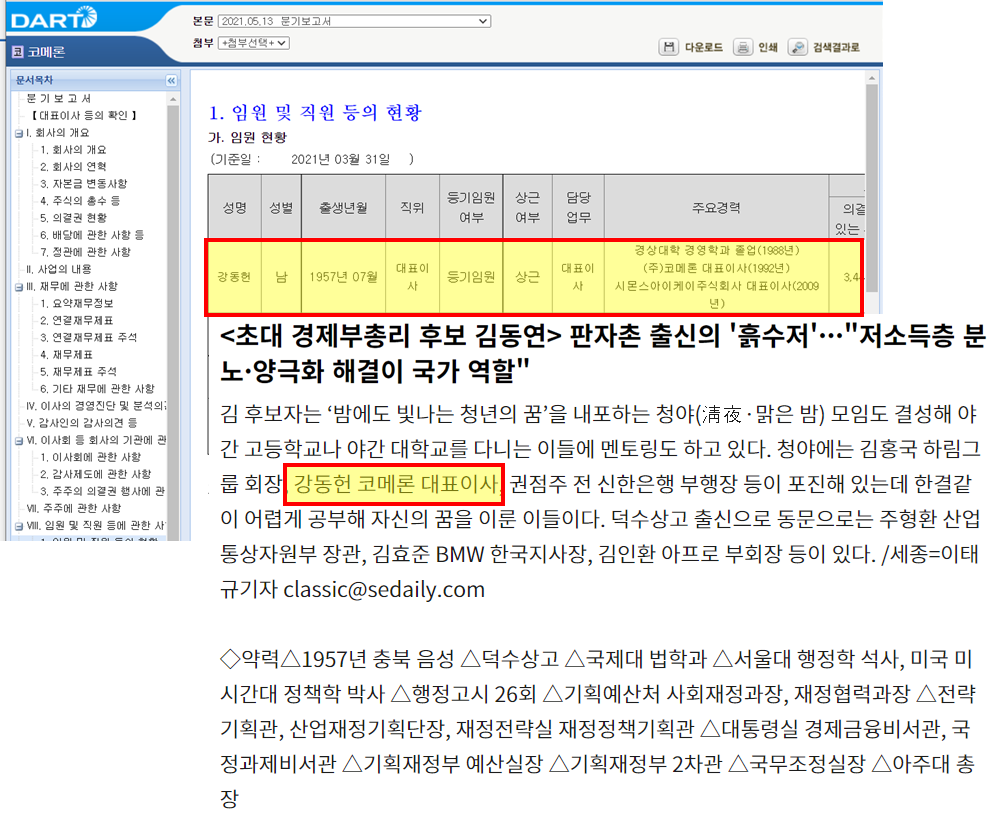 코메론 : 강동헌 대표가 김동연과 함께 청야모임의 일원