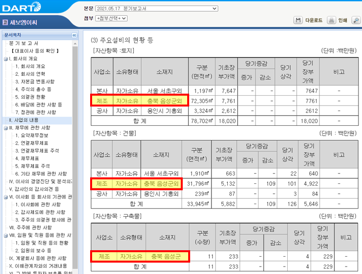 세보엠이씨 : 제조설비가 김동연 고향(충북 음성)에 위치