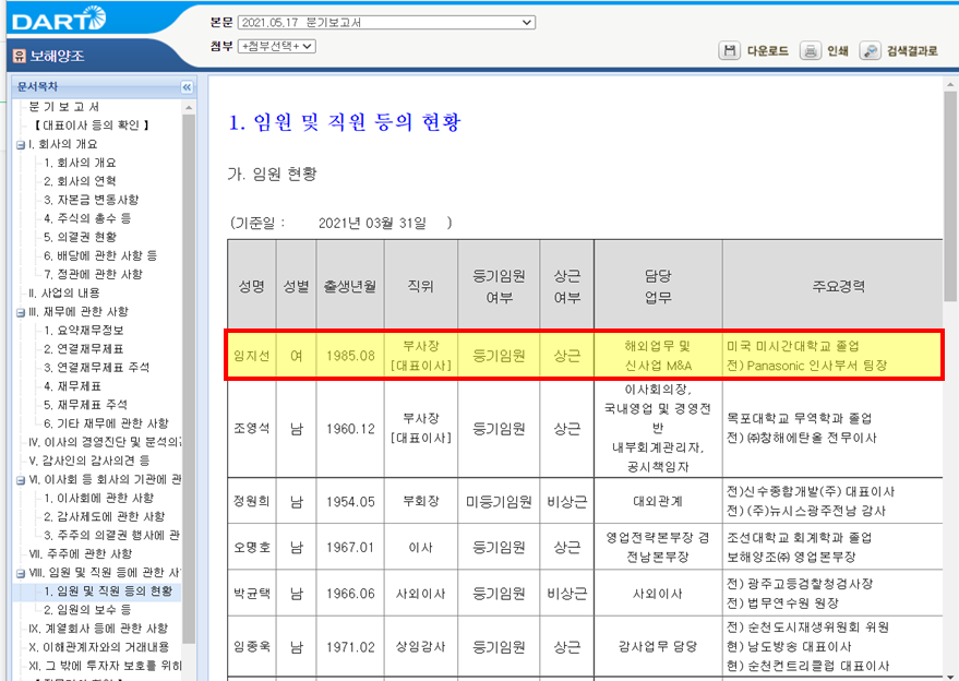 보해양조 : 임지선 부사장 미시간대 동문