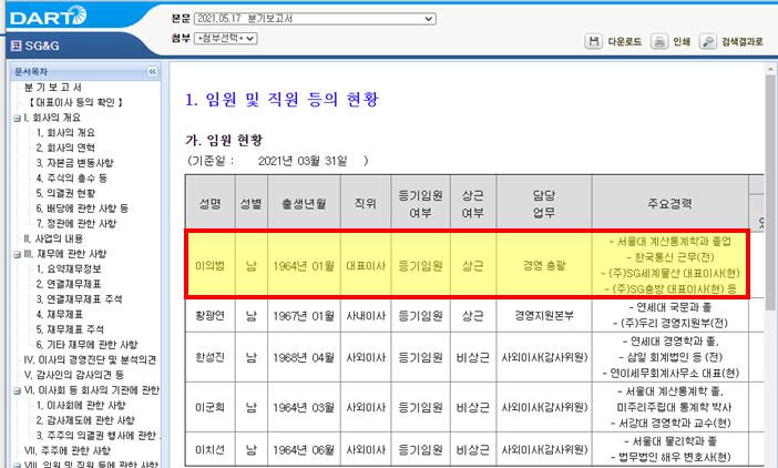 SG&G: 이의범 대표 서울대 동문