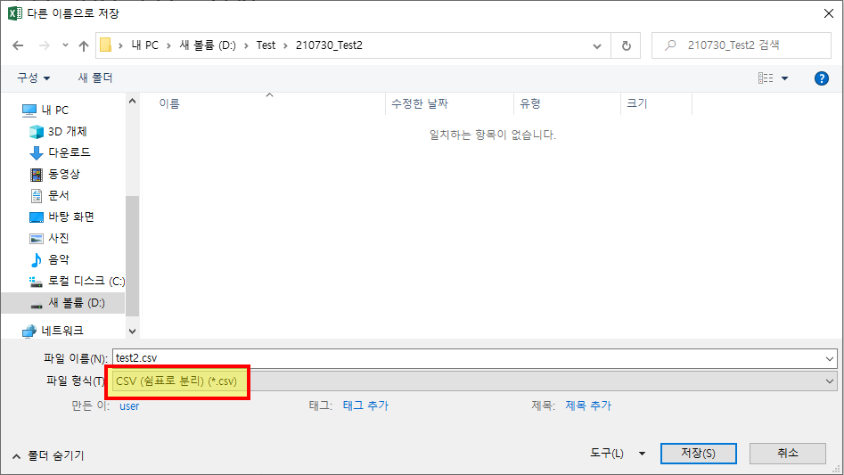 .csv 확장자로 저장합니다.