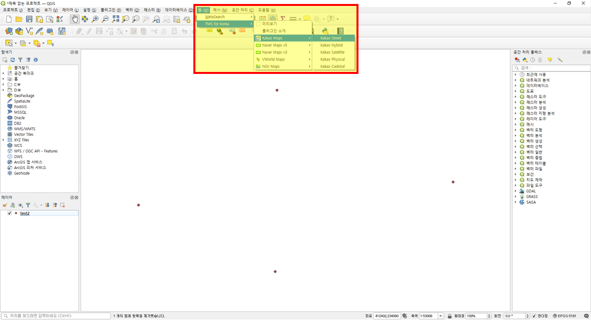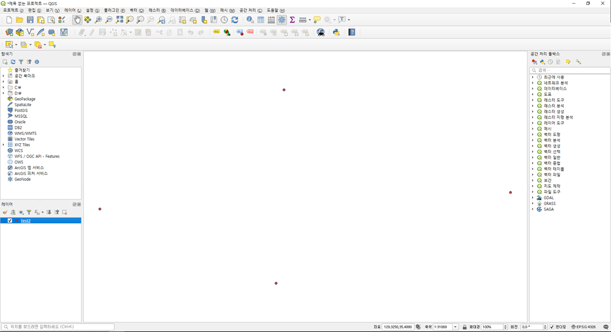 포인트가 지도위에 잘 표시되면 정상적으로 작업을 수행한 것입니다.