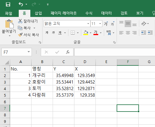 Y(위도), X(경도) 컬럼을 주의하도록 합니다.
