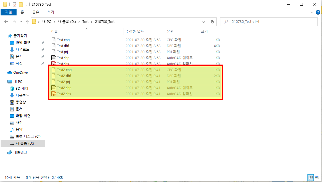 좌표계 설정이 제대로 되면 .prj 파일이 생성됩니다.