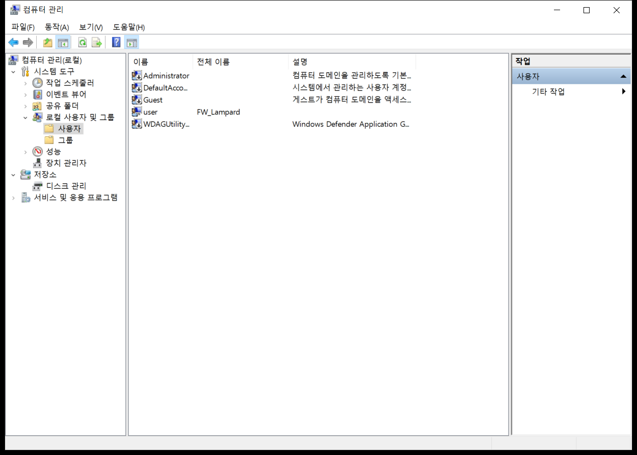 그런 경우에는 [시작 - 컴퓨터관리 - 로컬 사용자 및 그룹 - 사용자]로 들어가셔서 PC 이름을 변경해주시면 됩니다.