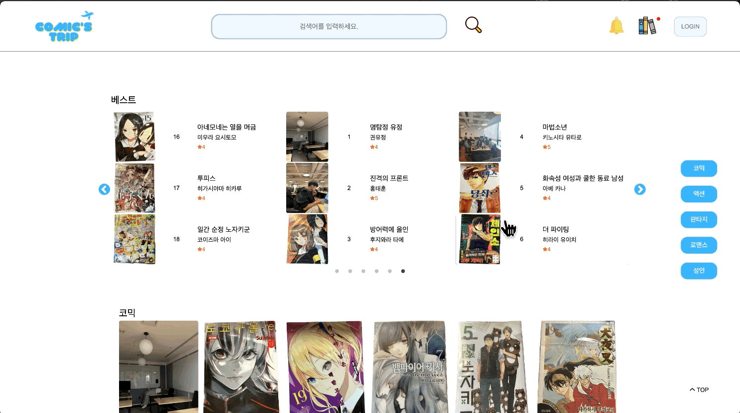 - Library를 활용하여 Carousel 등 기능을 구현한 점