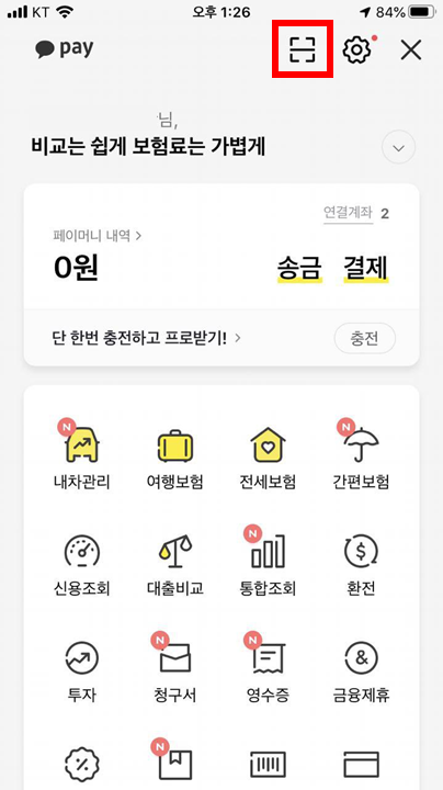 스마트폰을 켜서 카카오톡의 카카오페이를 실행합니다.