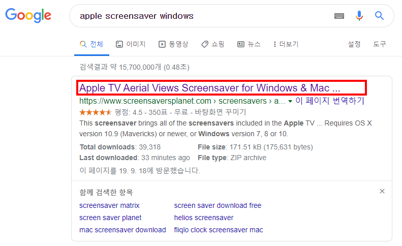 Apple사의 화면 보호기를 다운로드 받아 적용해보겠습니다.