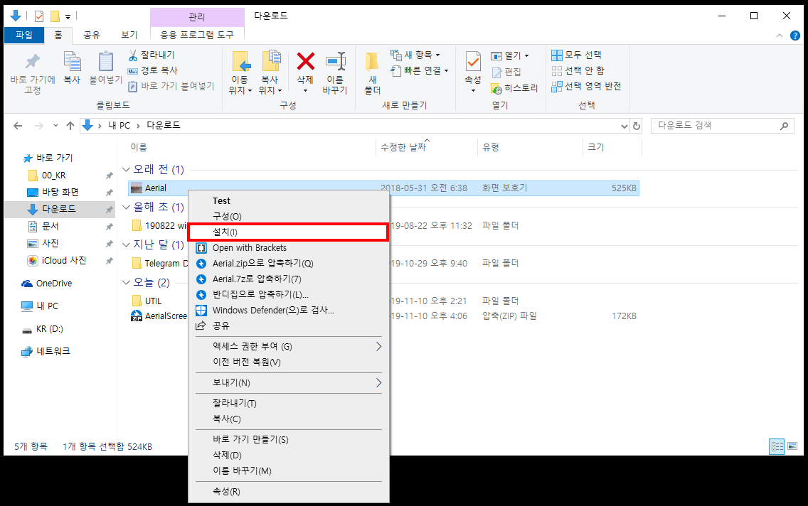 실행파일을 마우스 우클릭 후 설치를 눌러줍니다.