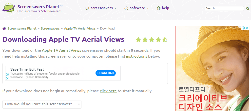 만약 다운로드가 안 되시면 "Apple TV Aerial Viesw"를 클릭하면 다운로드가 실행됩니다.