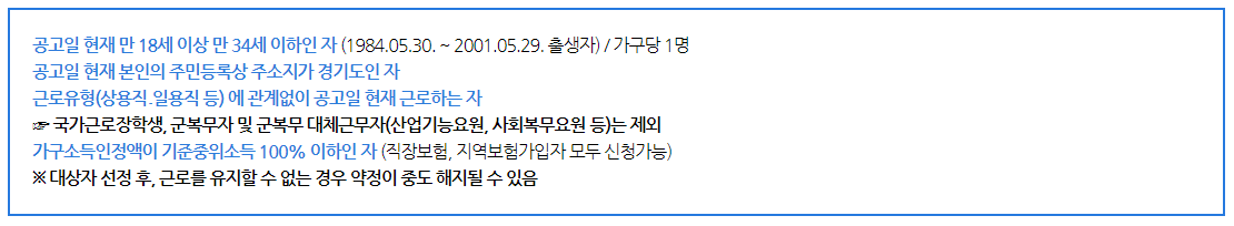 경기도에 거주 중인 청년(만 18~34세)을 대상으로 시행하는 정책인데요.