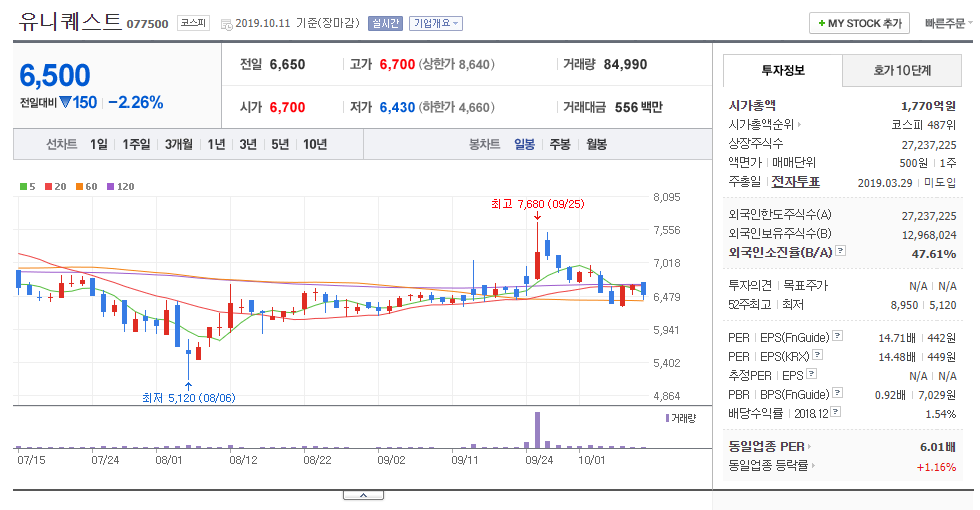 ▣ 유니퀘스트(077500)