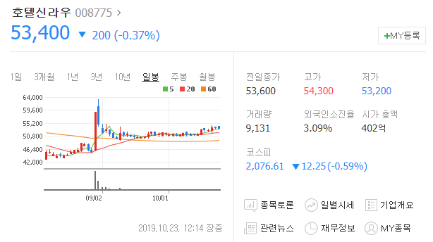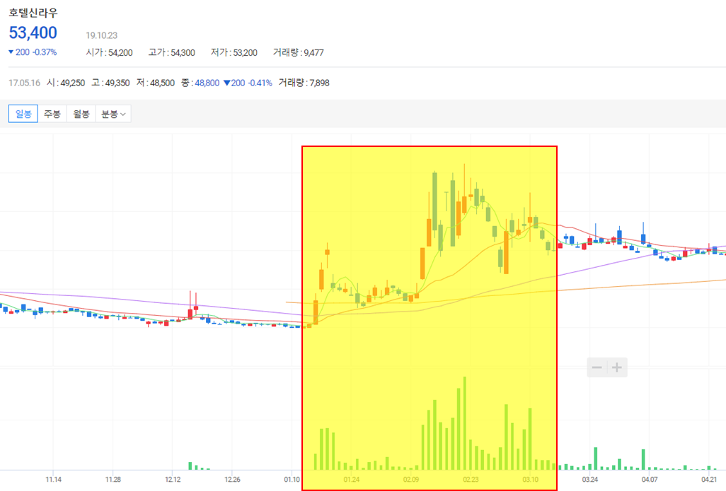 당시 호텔신라우선주는 상한가를 기록했습니다.