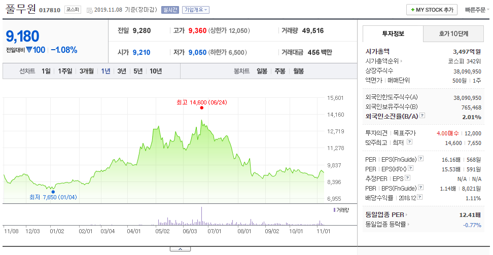 ▣ 풀무원(017810)