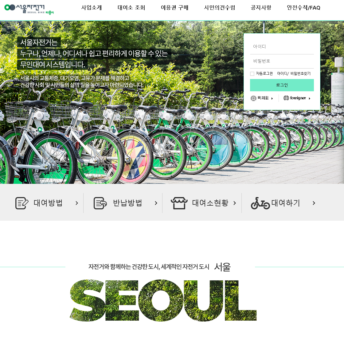 2015년 따릉이가 개통하였죠? 이후에 지속적으로 시민들의 사랑을 받고 있습니다.